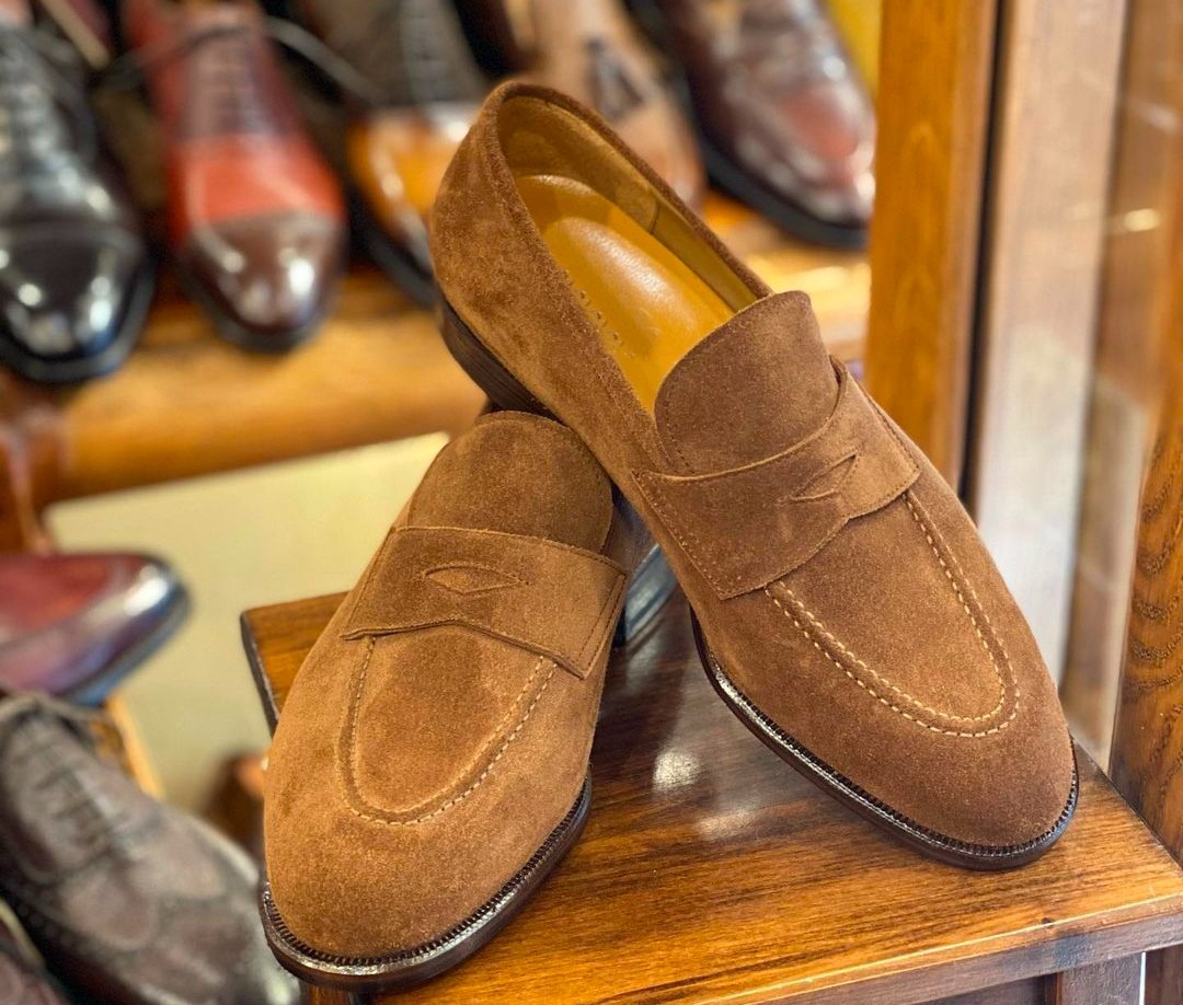 Handmade Men's Fashion Brown Suede Penny Loafer Shoes
