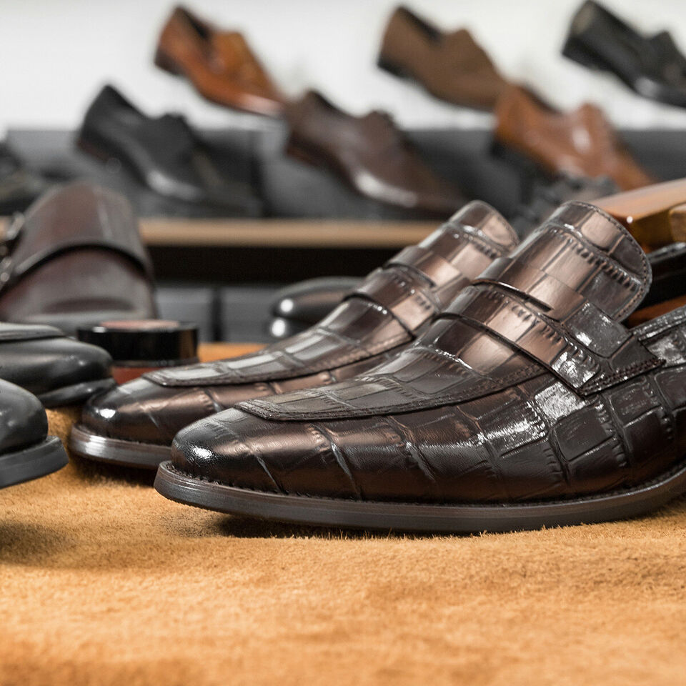 Handmade Men's Fashion Brown Alligator Print Leather Peeny Loafer Shoes