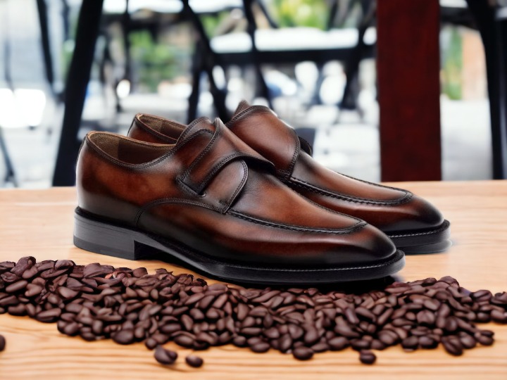 Handmade Men's Burgundy Leather Monk Strap Office Shoes