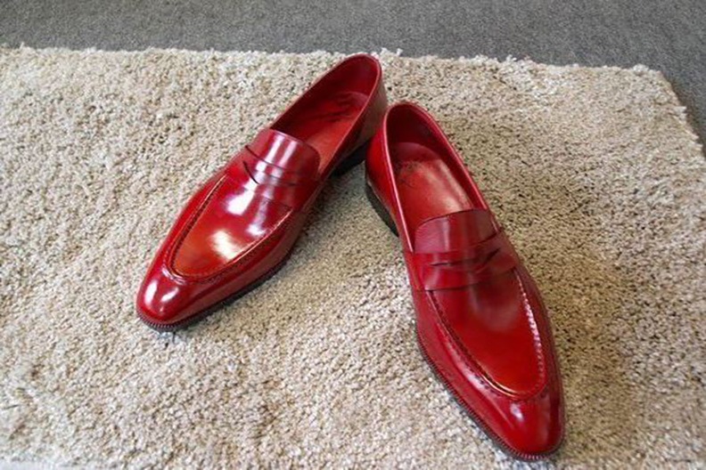 Handmade Men's Fashion Red Leather Penny Loafer Shoes