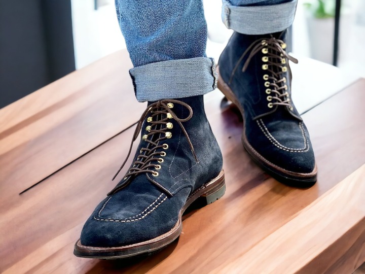 Handmade Fashion Men's Blue Suede Lace Up Ankle Boots