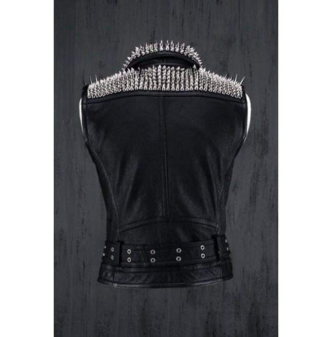 Handmade Men's Fashion Black Leather Silver Studded Zipper Jacket