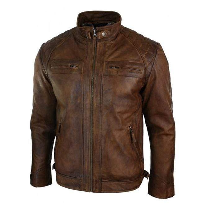 Men's Brown Leather Biker Zipper Fashion Handmade Jacket