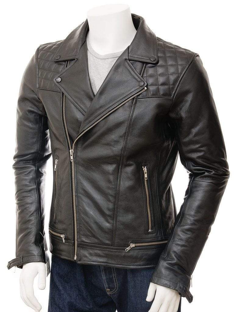 Handmade Men's Fashion Black Leather Zipper Biker Jacket