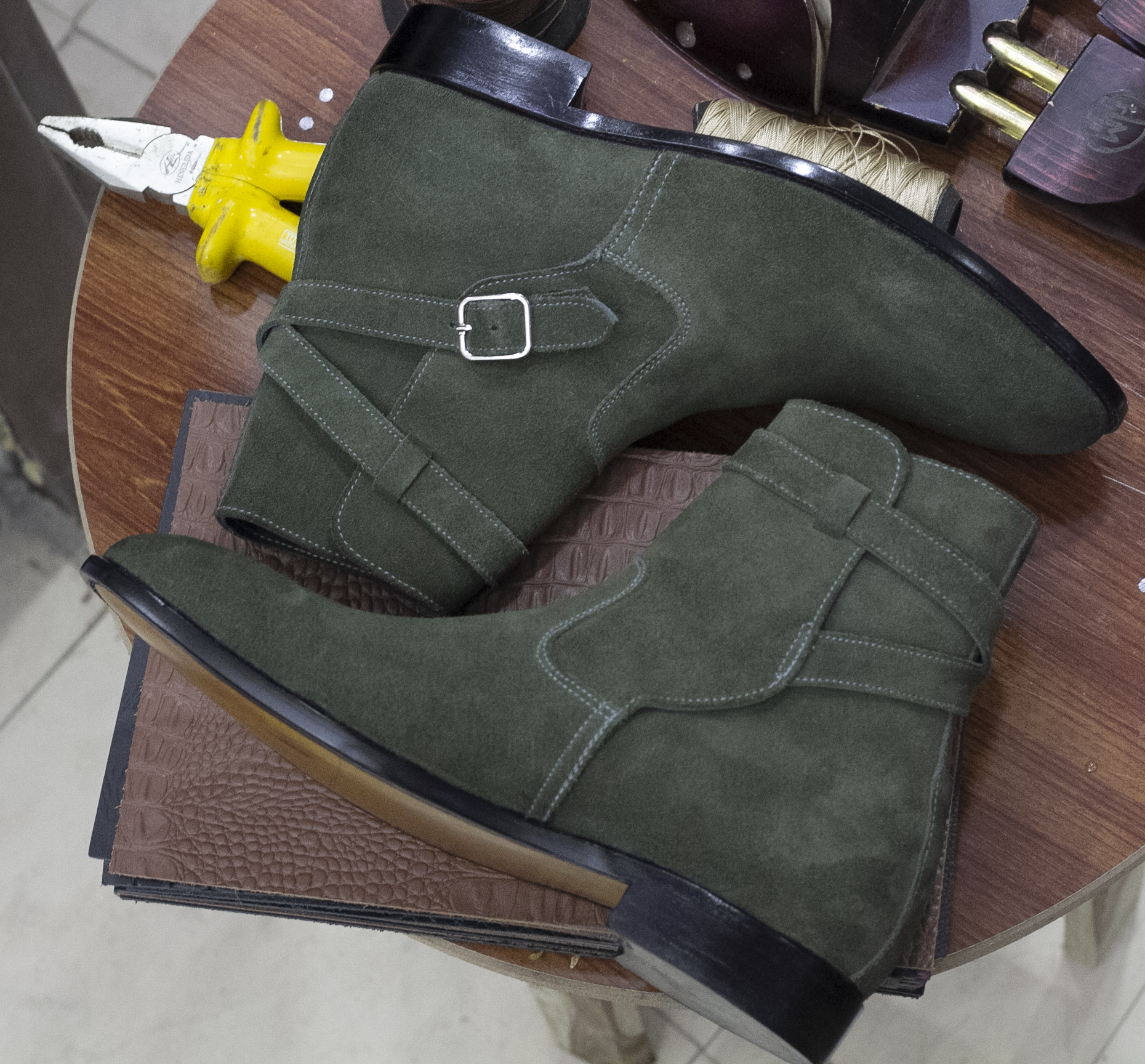 Fashion Men's Green Suede Handmade jodhpur Leather boots.