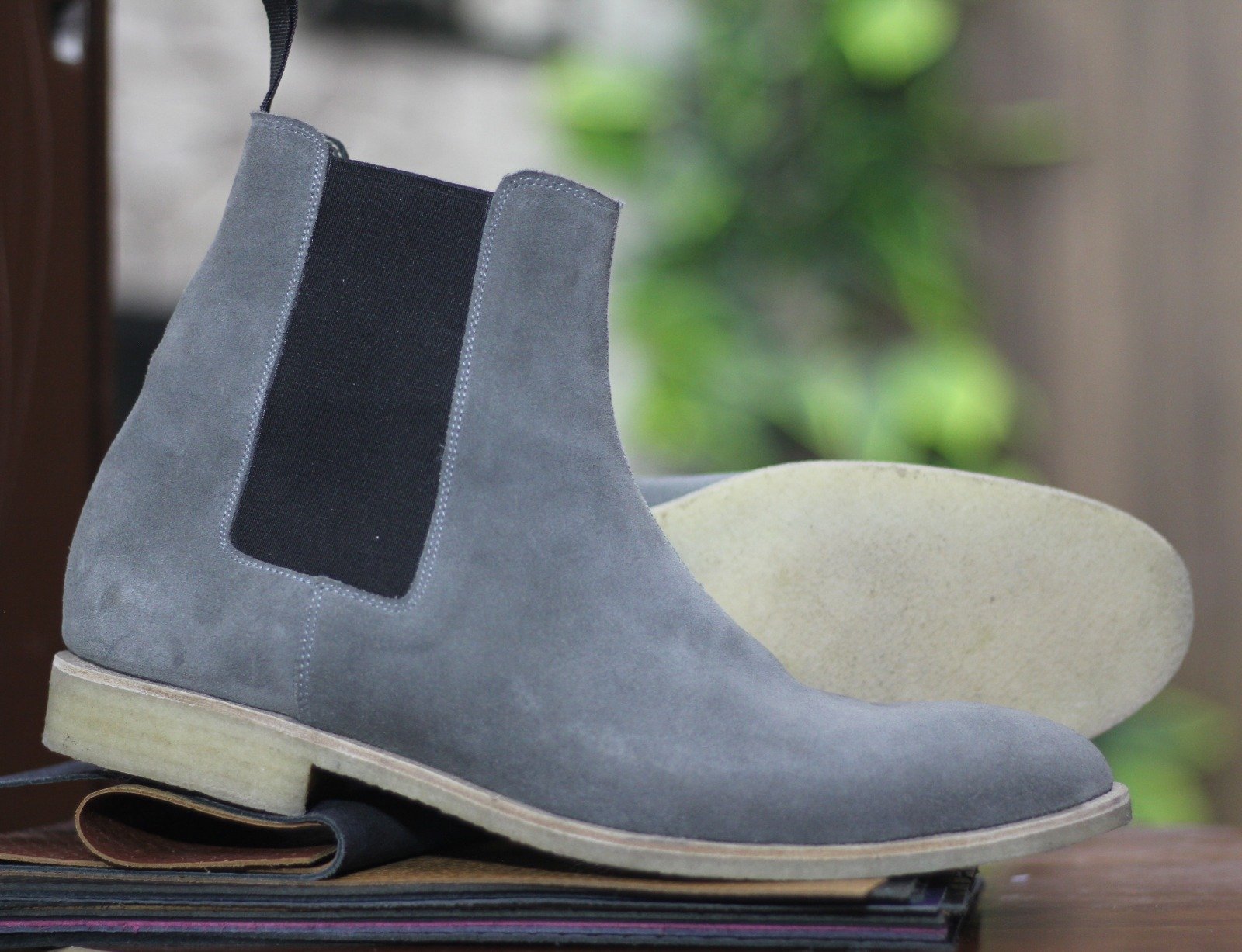 Handmade Ankle High Grey Chelsea Leather Men's Classic Boot.