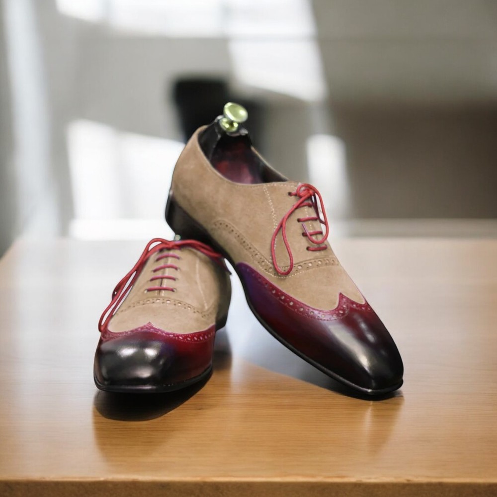 Handmade Genuine Leather & Suede Wing tip lace up shoes for Men's