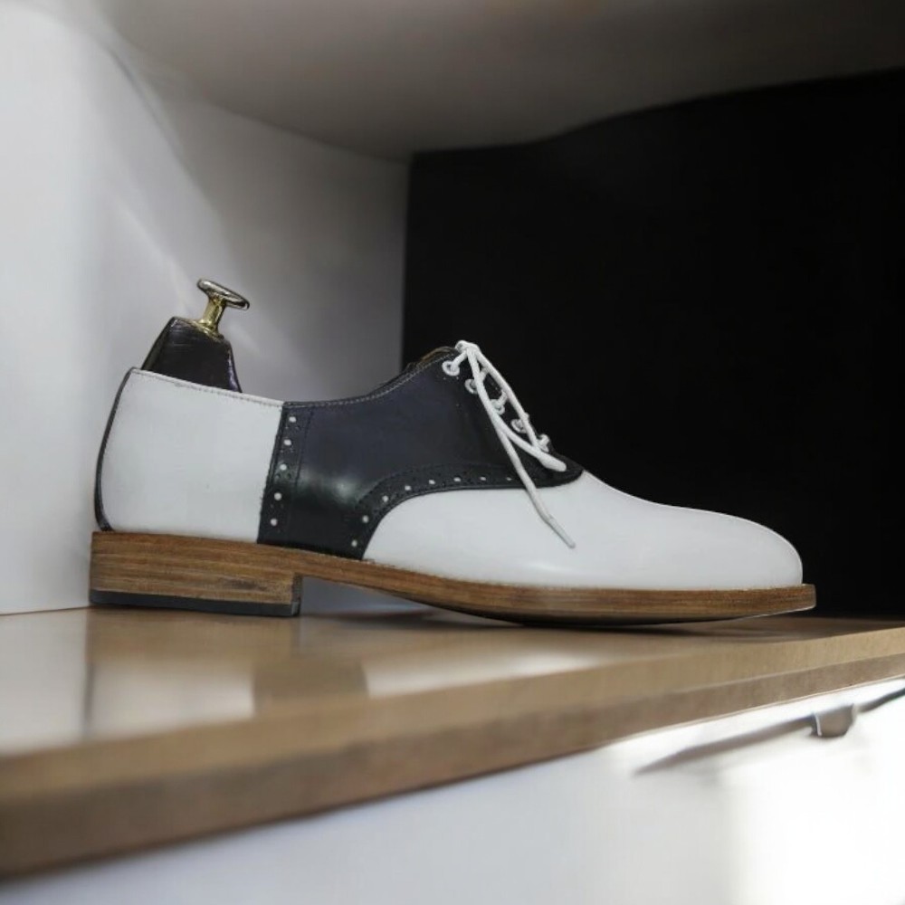 Handmade Bespoke Men's Black & White Genuine Leather Shoes, Oxford Shoes