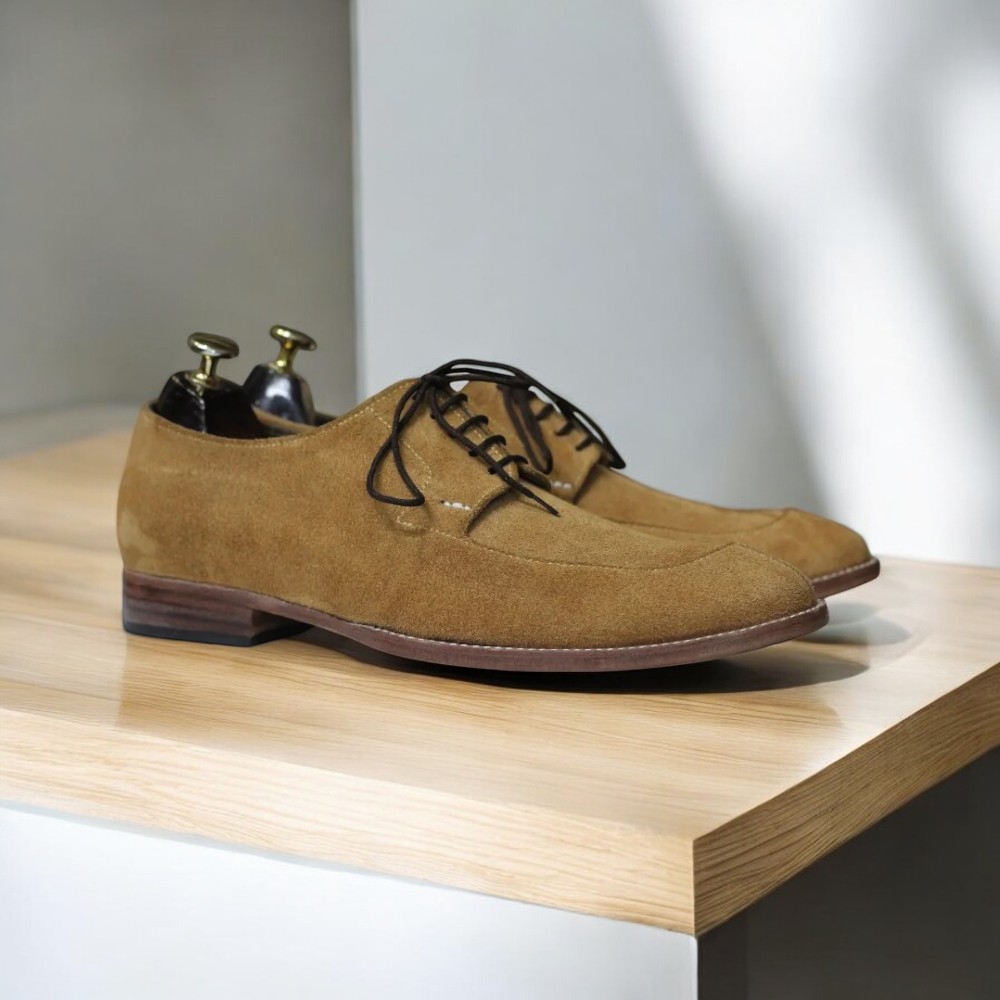 Handmade Derby Suede Lace Up Shoes | Stylish Beige Suede Shoes for Men