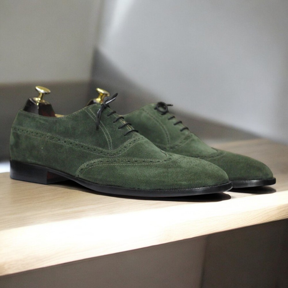 Handmade Wing Tip Shoes, Suede Leather Green Shoes For Men's