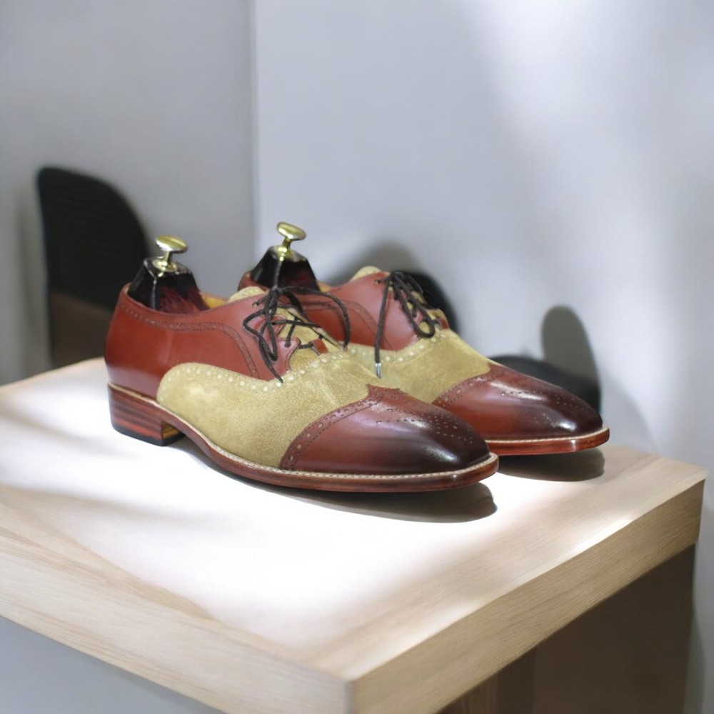 Handmade Wing Tip Brogue Brown Goodyear Welted Lace-Up Shoes for Men