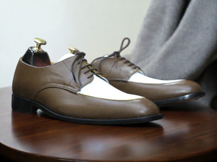 Handmade Leather Shoes, Dress Derby Lace up Black White Leather Men's Shoes