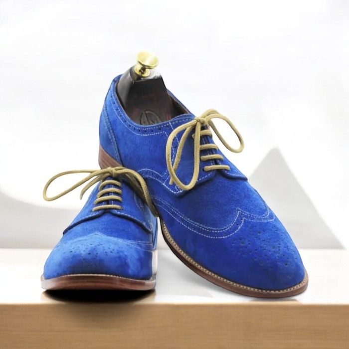 Men's Blue Suede Lace-Up Oxfords Leather Shoes