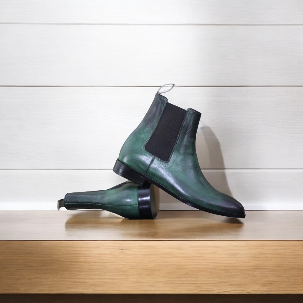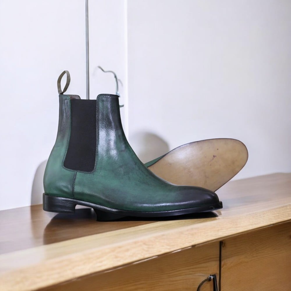 Handcrafted Green Chelsea Boots –Elegance Leather Boots.